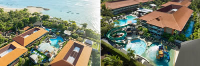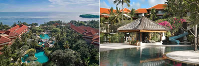 コスパ最高・小学生(12歳以下)の子供は添い寝無料・クラブラウンジ子連れ可(カクテルタイムもOKという情報アリ) プールが5つ、ラグーンプールやキッズプール、ウォータースライダーあり。キッズクラブあり。バスタブと独立したシャワーブース付き。クラブラウンジは専用プールありフード類の口コミも好評。巨大ショッピングモール「バリコレクション」目の前。