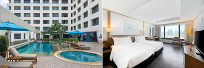 MRTペッブリー駅・BTSアソーク駅まで無料送迎あり MRTペッチャブリー駅 徒歩11分・エアポートリンク マッカサン駅 徒歩18分。屋外プールは小さめ。バスタブ付き。エグゼクティブルームはクラブラウンジ利用可。(旧アヴァニ・アマリ)