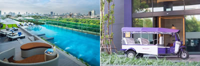 クラブラウンジのコスパ最高・駅から無料送迎(徒歩はペッブリー駅から10分程度) MRTペッチャブリー駅3番出口から無料送迎可(迎えは電話OK)。小学生・11歳まで子連れは添い寝無料。シャワーのみだが快適。クラブラウンジとインフィニティプールが繋がっており、プールサイドでもカクテルタイムが楽しめる。クラブラウンジ付き(プリビレッジルーム)が1万5千円前後の日程がお得でおすすめ。
