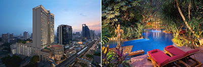 緑に囲まれたプール BTSアソーク駅・MRTスクンビット駅に直結。マリオット系列のラグジュアリーコレクション。日本人スタッフ在籍。クラブラウンジはないが上級会員と部屋カテゴリによっては、レストランでのイブニングカクテルサービスがある。