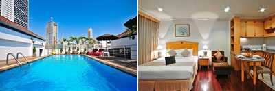 喫煙ルームあり(少しだけ) [喫煙]デラックスコーナーダブル(20平米)簡易キッチン付きで換気扇あり。スクンビットエリアのプロンポン駅からすぐ。ソイ26沿い。プールは小さめ。