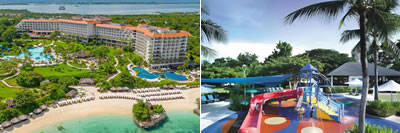 コスパ最高・シャングリ・ラの半額くらい 小学生(12歳以下)の子供は添い寝無料。最大級のウォーターパークが魅力。赤ちゃん向けから中学生まで楽しめる充実度。大型スライダー、造波や流れるプールも人気。プール付きヴィラタイプあり。全室バスタブ付き。キッズクラブあり。日本食・和食など館内10か所のレストランの他、近くにスーパーマーケットや美味しいフィリピン料理店もある。韓国系リゾートなので韓国料理が充実。空港からは車で約20-30分。
