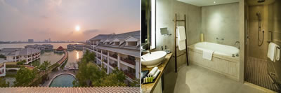コスパ最高・小学生(11歳以下)の子供は添い寝無料・クラブラウンジ子連れ利用は有料(カクテルタイムも可) 西湖(タイ湖)のほとりでリゾート感あり。プールは小さめだが、キッズプールもある。湖の上に部屋があり、非日常を味わえる。バスタブ・シャワーブース付き。